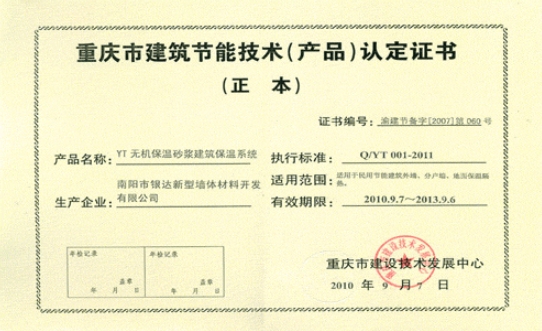 此證書為往年曾獲證書,本介紹頁僅為方便用戶了解企業(yè)歷史資質(zhì),望悉知 重慶市建筑節(jié)能基礎(chǔ)(產(chǎn)品)認定證書