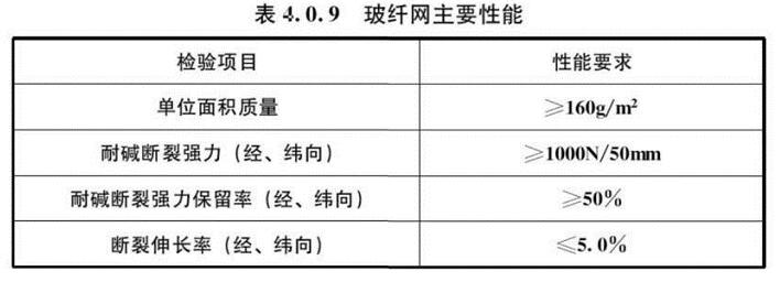 4.0.9 玻纖網的主要性能應符合表4.0.9的規定。