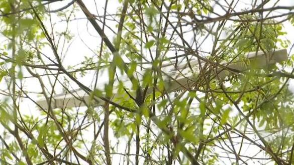 在旁邊的樹上,也掛著一片從樓頂掉落的保溫層碎片,外墻上還粘連著即將脫落的保溫層,如果再次發生脫落事故,將對居民出行構成危險。