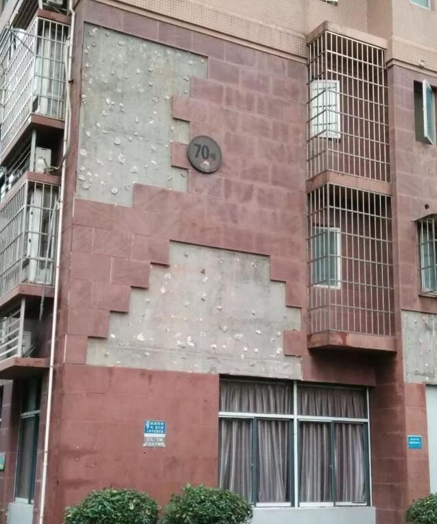 近日,梅列區陽光城小區部分樓宇外墻瓷磚陸續脫落,6月15號,記者實際走訪中發現,陽光城69、70棟等居民樓確實有幾處瓷磚脫落厲害,外墻基層在瓷磚脫落后裸露在外,十分顯眼。有住戶說,瓷磚成片脫落,一方面影響小區面貌,讓人看了心情很不好;另一方面也是安全隱患,樓下就是人行道,接下來的臺風天萬一外墻瓷磚繼續脫落砸到行人,后果不堪設想。