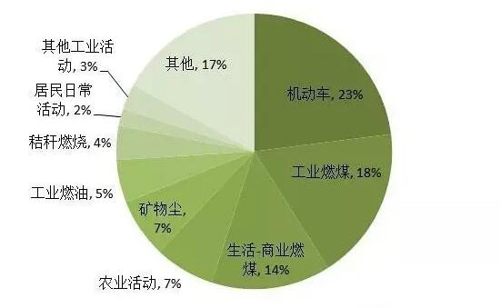 分析顯示,北京細(xì)顆粒物PM2.5 中大多是直徑小于1微米的超細(xì)顆粒物PM1,它的來源非常復(fù)雜。其中來自工業(yè)燃煤和生活燃煤的排放各貢獻(xiàn)約18%和14%、機(jī)動(dòng)車貢獻(xiàn)23%、居民日常生活及其他活動(dòng)占了約19%,剩下的是其他人類活動(dòng)和自然界產(chǎn)生的。